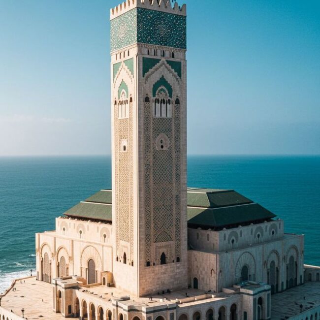 Arrivo all’aeroporto di Casablanca, dove all’uscita troverete il vostro driver ad aspettarvi. Farete una sosta alla moschea di Casablanca, è l’unica moschea presente in Marocco in cui anche i non musulmani possono accedere. È stata ideata da un architetto francese per volere del re Hassan II ed erge su una lingua di terra che si affaccia sull’oceano Atlantico. Il minareto è alto 200 m e dalla cima parte una luce laser in direzione della mecca.